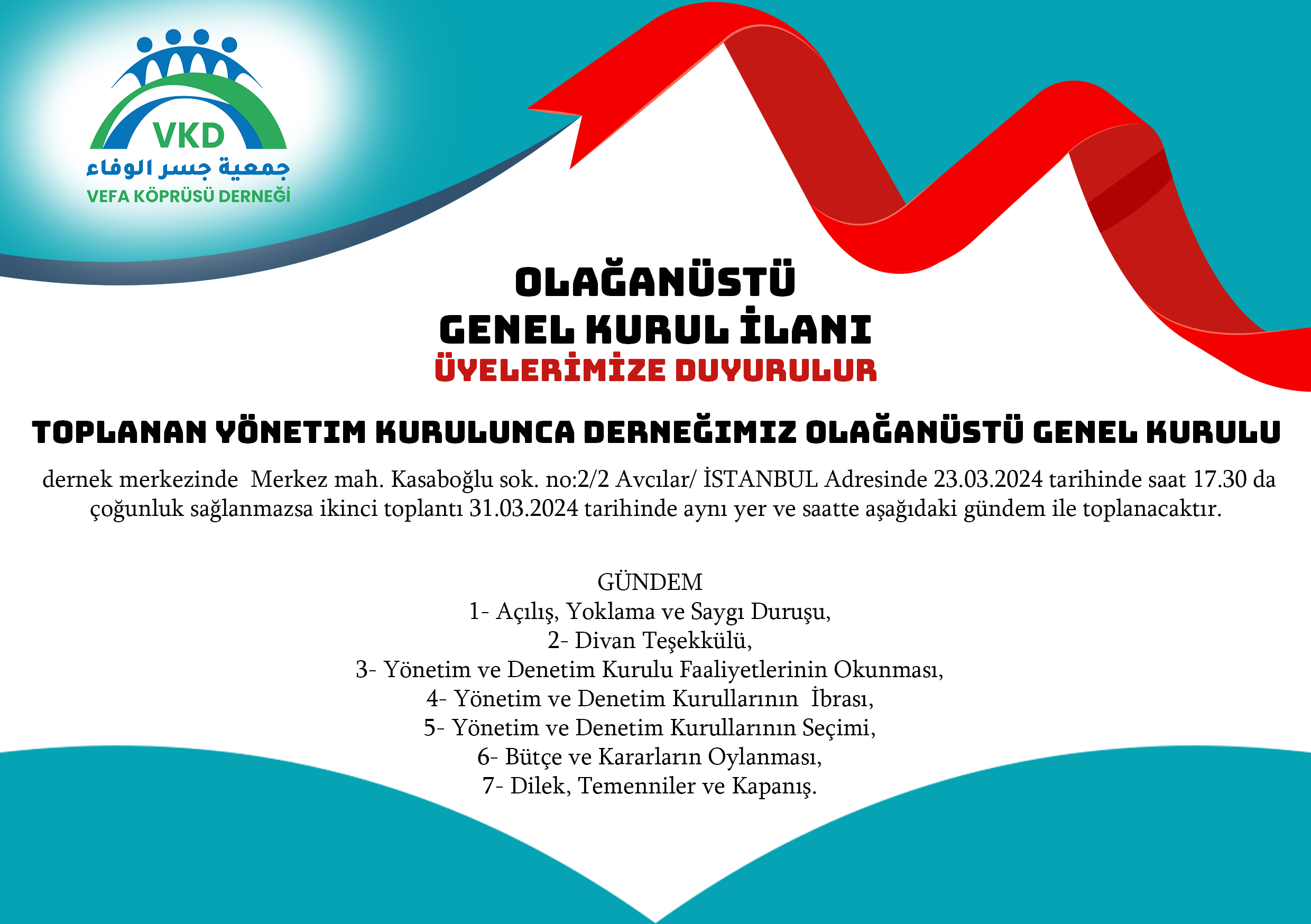 OLAĞANÜSTÜ GENEL KURUL İLANI ÜYELERİMİZE DUYURULUR